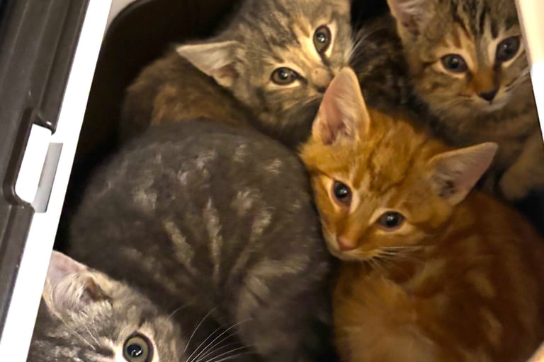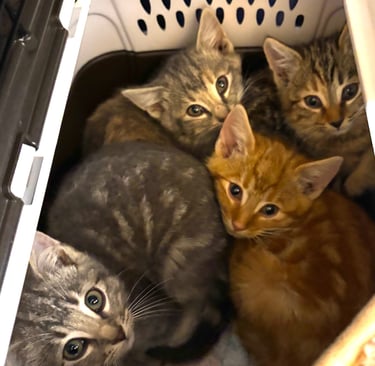 Uh oh! It happened... Big Ds just took in four 9 week old babies to socialize and find homes for! How apt for a thanksgiving weekend! Grateful they are safe and Mom is doing well and has a home... Off to the vet Tuesday for their first check-up!